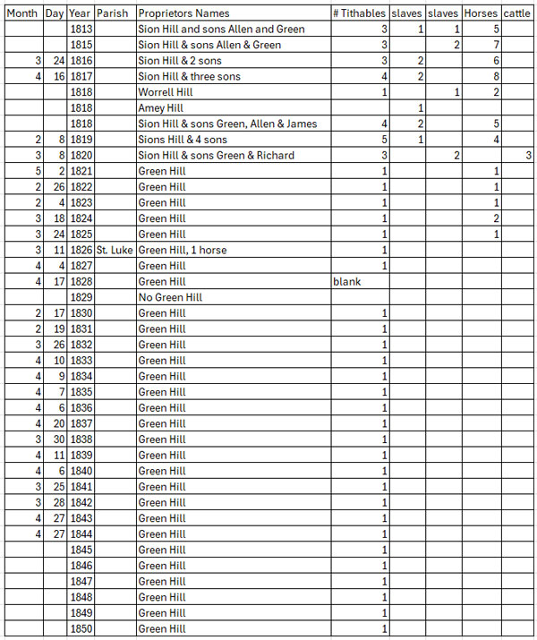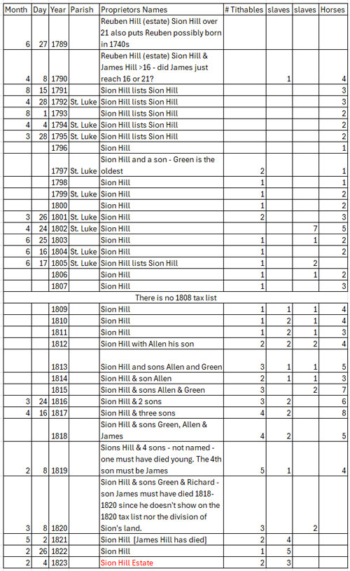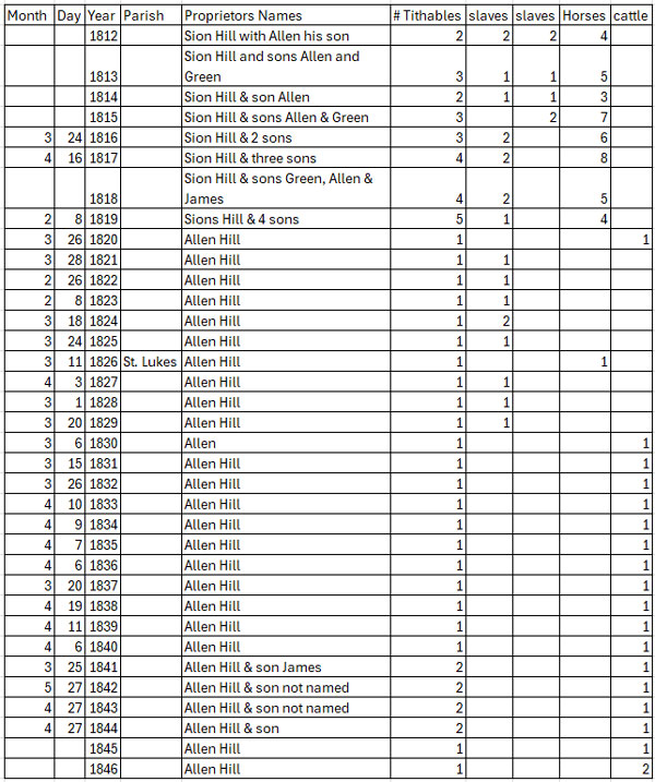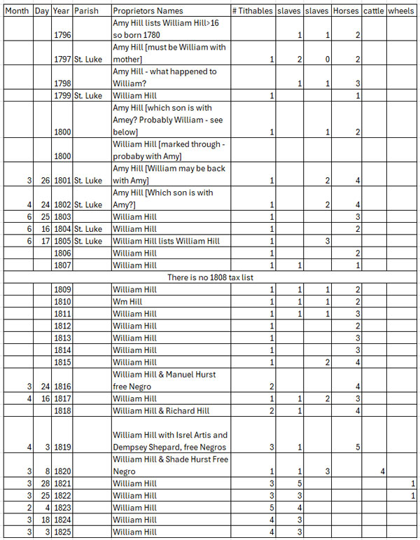 - William Hill is out on his own starting in 1803 through 1825. There are several occasions where he is also paying tax for a free Negro and for two in 1819.