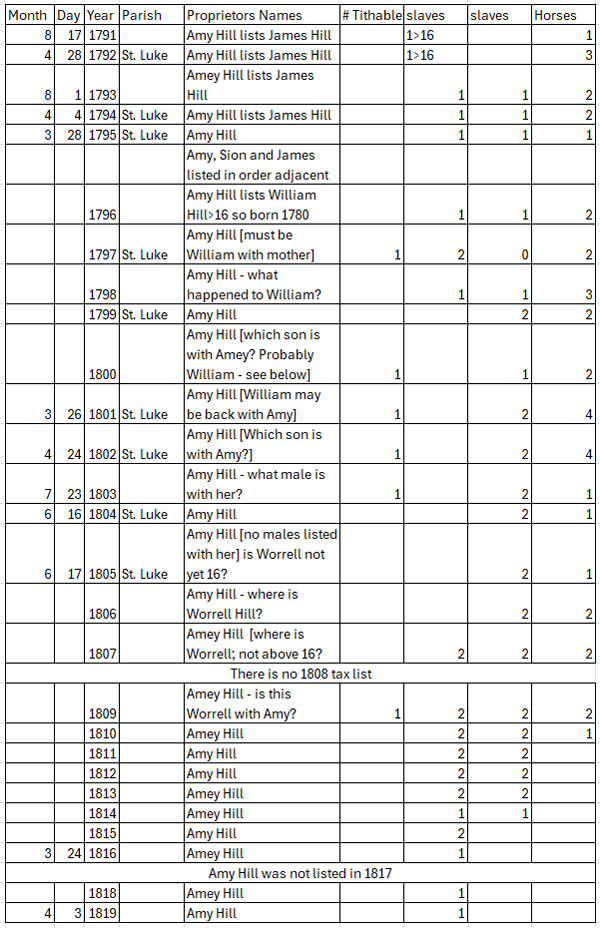 - William isn't listed in 1797, but mother Amy Hill shows a tithable; that could be William.