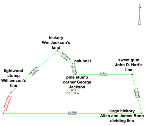 a pine in Rushing Branch thence near a west course