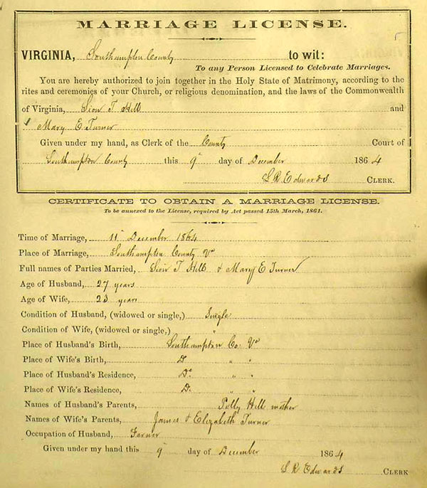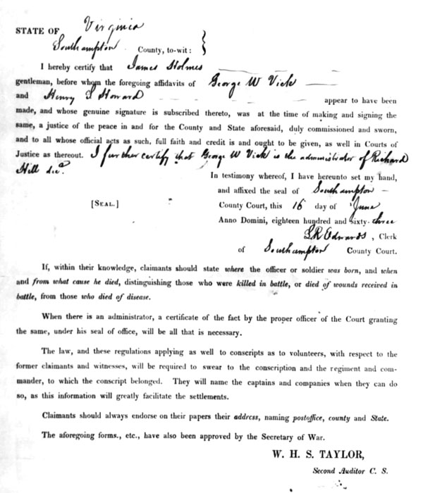 REUBEN HILL OF SOUTHAMPTON COUNTY, VIRGINIA